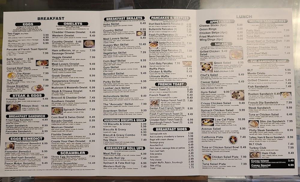 For lunch, diners enjoy a variety of sandwiches, melting cheeseburgers, and home-style dishes. Sides like crispy hash browns and fresh salads enhance the main offerings. Portions are satisfying, and prices fit the local budget.