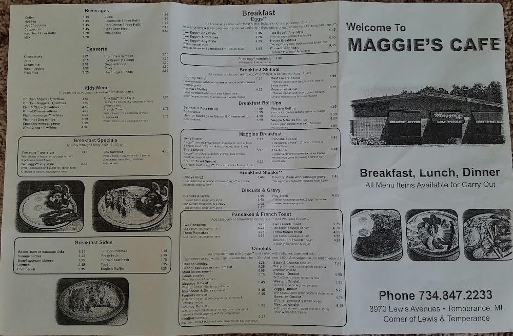 Welcome to Maggie's Cafe, your cozy diner in Temperance, MI, located at 8970 Lewis Ave. We take pride in serving a delightful range of traditional American dishes, from hearty breakfasts to satisfying lunches and dinners. With a focus on local specialties and a great selection of desserts, you’ll find something to please every palate. Enjoy a relaxed atmosphere perfect for solo diners, families, and groups. Our amenities include takeout, delivery, and wheelchair accessibility, ensuring a comfortable experience for all. Come indulge in our excellent coffee and inviting ambiance—Maggie's Cafe is the ideal spot for your next meal!